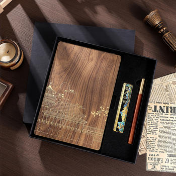 Gangtong Lüks Ahşap Desenli Defter ve Kalem Seti Hediye Kutusu Özel İş Günlüğü Yüksek Değerli Retro Çin Tarzı